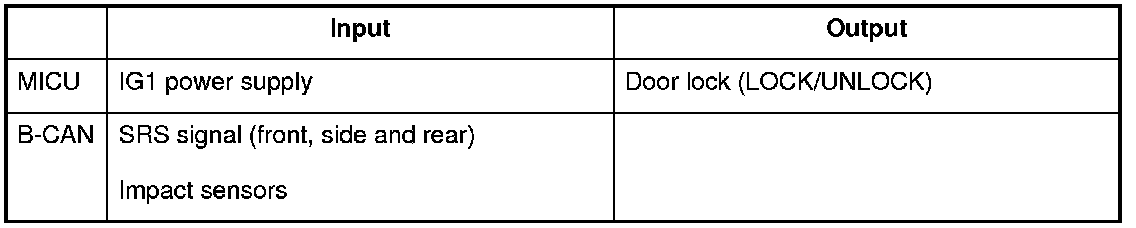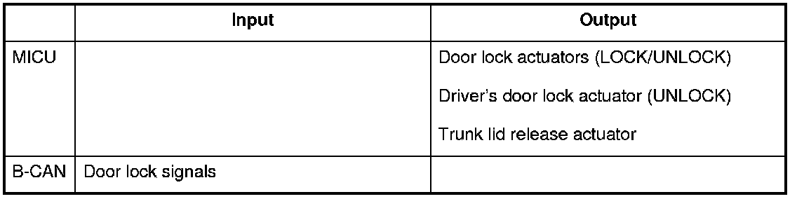 The MICU control of the door lock actuators is based on inputs from each switch and the B-CAN data.