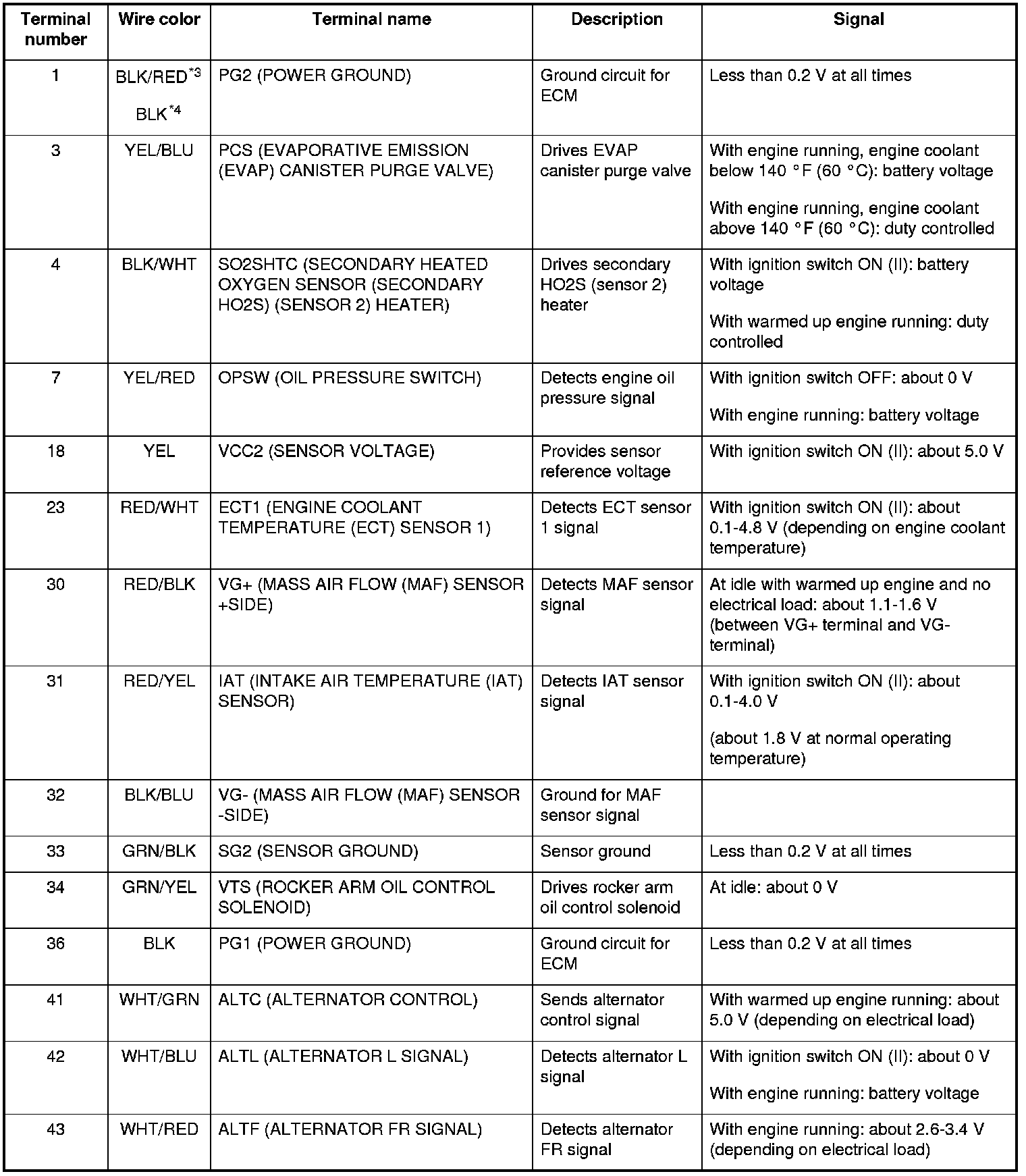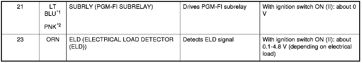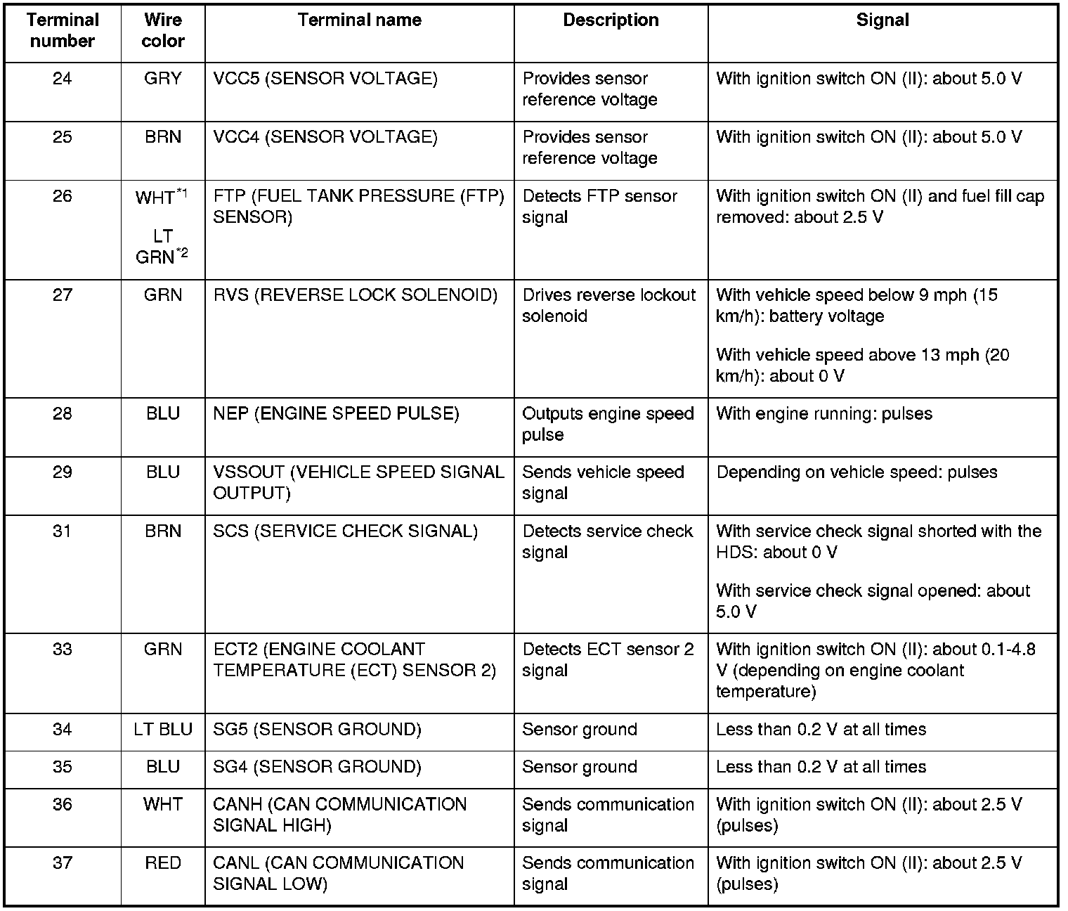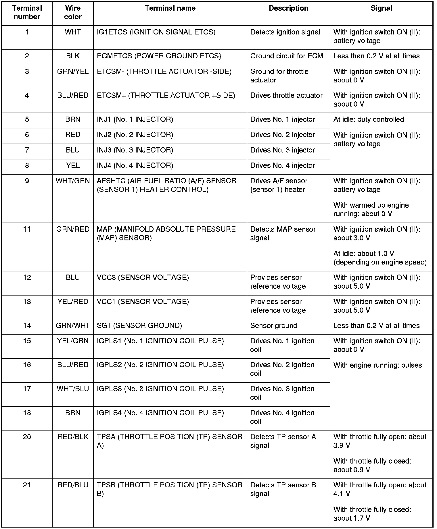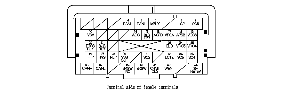 ECM Inputs and Outputs at ECM Connector A (square) (44P)