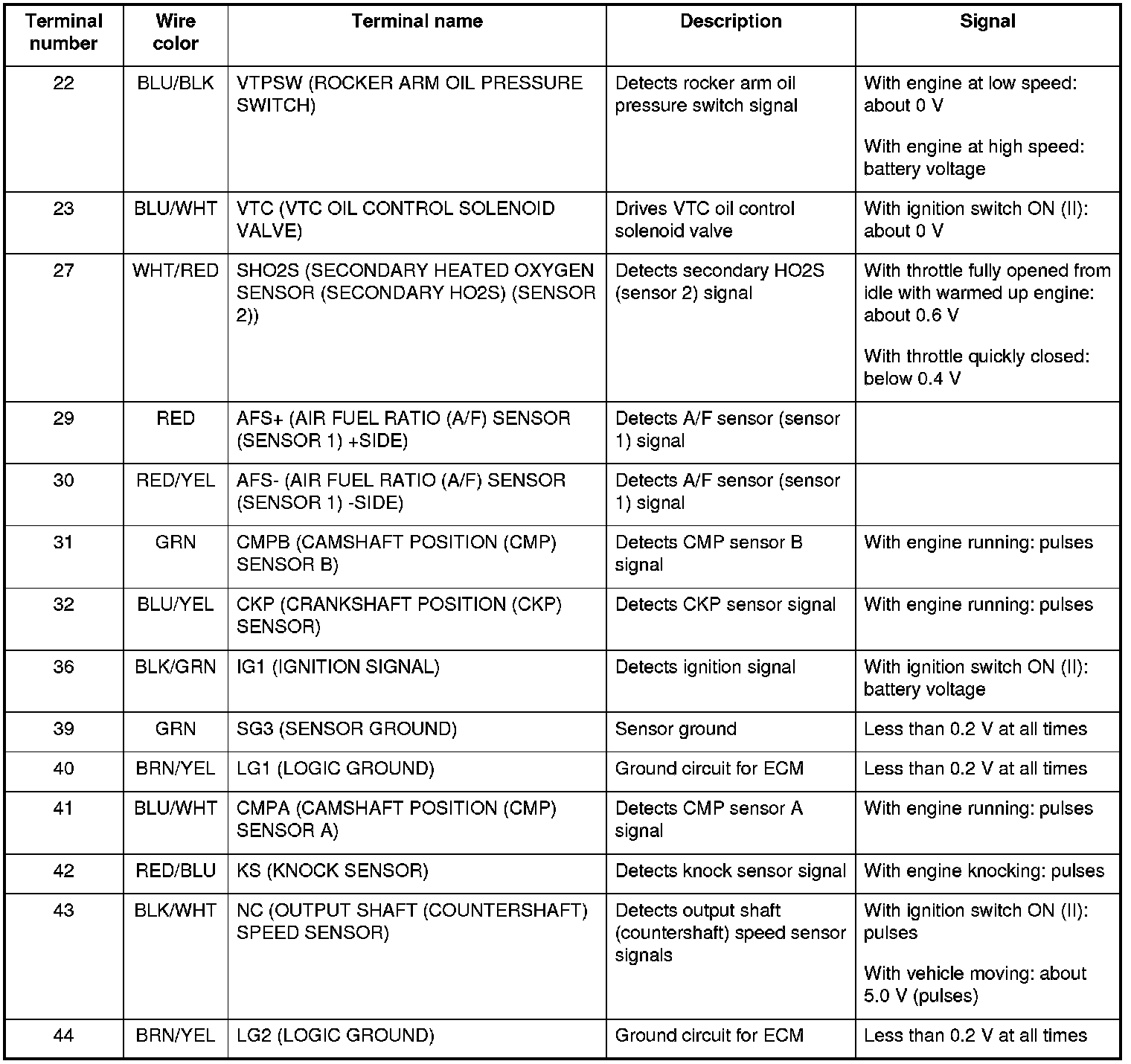 ECM Inputs and Outputs at ECM Connector B (triangle) (44P)