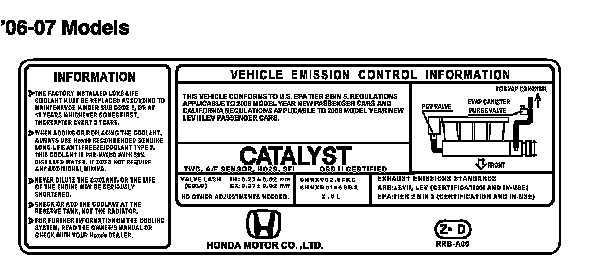 THIS VEHICLE CONFORMS TO U.S. EPA TIER 2 BIN 5 REGULATIONS APPLICABLE TO 2006 MODEL YEAR NEW PASSENGER CARS AND CALIFORNIA REGULATIONS APPLICABLE TO 2006 MODEL YEAR NEW LEV II LEV PASSENGER CARS.