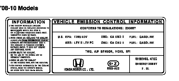 CONFORMS TO REGULATIONS: 2008 MY