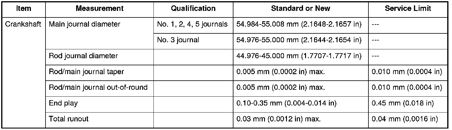 Crankshaft Specifications