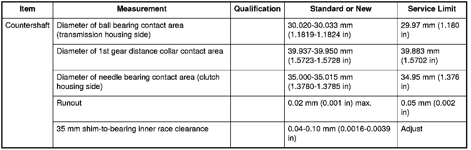 Countershaft Specifications