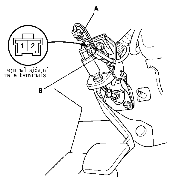 2. Remove the clutch interlock switch (B). Clutch Interlock Switch Replacement
