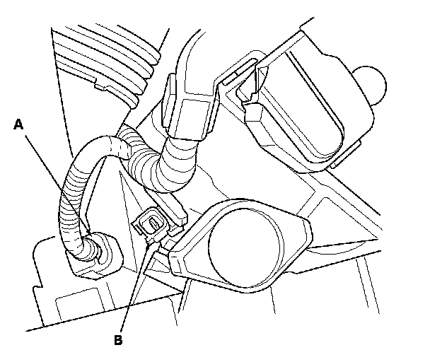 10. Make sure the shift lever is in neutral, then disconnect the engine wire harness 1P connector (A). Connect a jumper wire from the battery positive terminal to the starter subharness 1P connector (B).