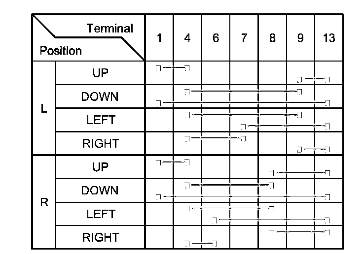 4. If the continuity is not as specified, remove the screws and replace the power mirror switch.