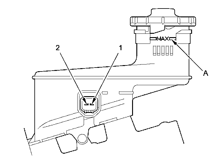 - Fill the reservoir with brake fluid to the MAX (upper) level (A). With the float up, there should be no continuity.