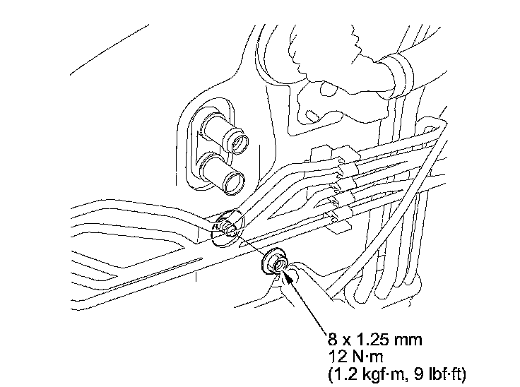 6. Remove the mounting nut from the heater unit. Take care not to damage or bend the fuel lines or the brake lines, etc..