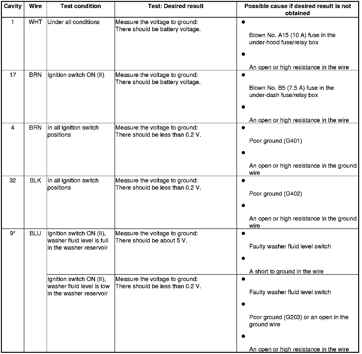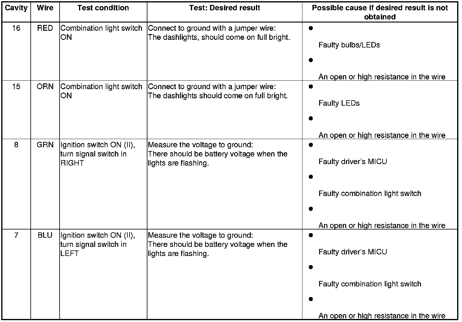 4. With the connector still disconnected, do the following input tests:
