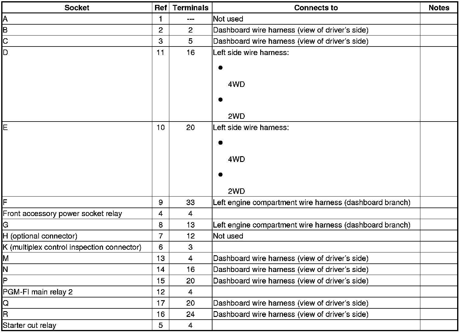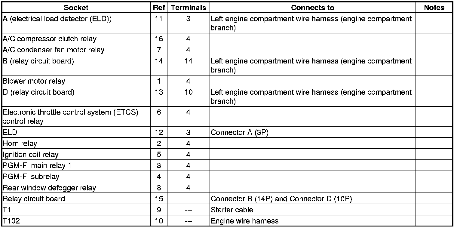 Fuse/Relay Box Connector Locations