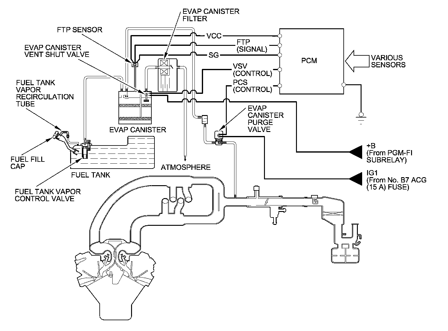 - During refueling, the fuel tank vapor control valve opens from pressure in the fuel tank, and feeds the fuel vapor to the EVAP canister.