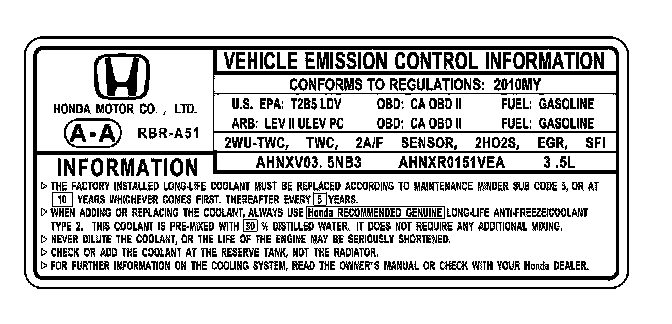 Under-Hood Emission Control Label