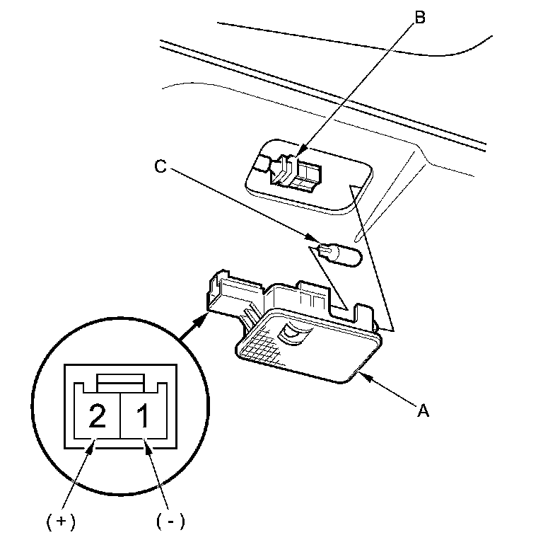6. If the continuity is not as specified, check the bulb (C). If the bulb is OK, replace the cargo area light.