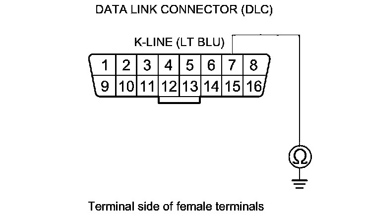 18. Check for continuity between DLC terminal No. 7 and body ground.