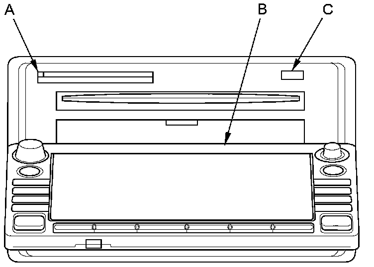 7. Push the CD eject button (C), and navigation DVD eject button and remove the discs (holding both discs by their edges to avoid fingerprints). To avoid scratches, place the navigation DVD and the customer's CD in a jewel case if available.
