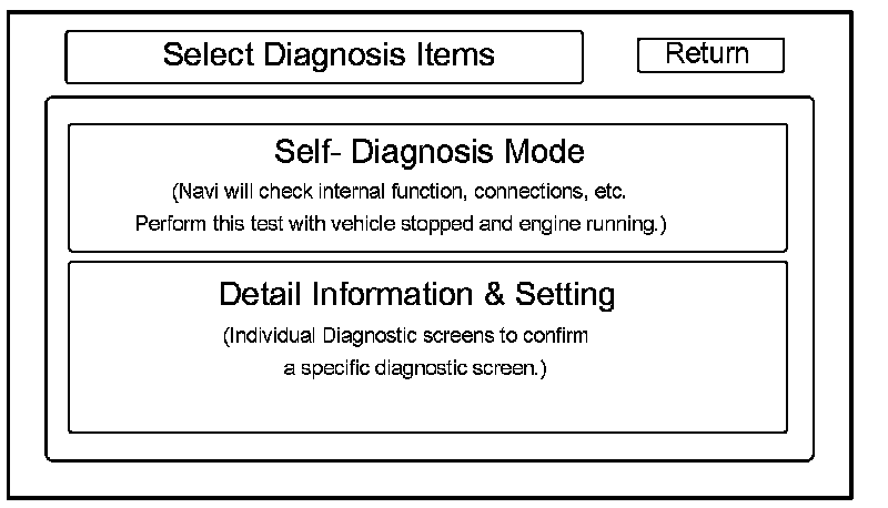 - Self-Diagnosis Mode (runs the automatic diagnosis of the navigation system)