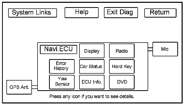 - Detail Information & Setting (allows you to manually diagnose the navigation system)