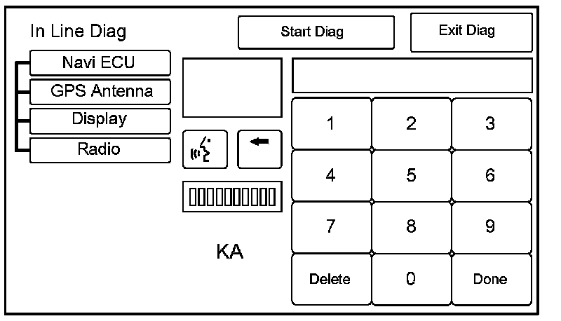When a navigation control unit is powered up for the first time at the factory or after replacement with a new or remanufactured audio-navigation unit, the factory diagnosis screen (In Line Diag) appears. Normally the factory does the steps necessary to verify proper operation and terminate the factory diagnostic.