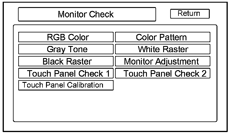 The display screen uses a touch sensitive membrane. This means that every location of the entire surface of the display is touch sensitive. This diagnostic allows alignment of these touch locations with the location of the button images on the screen.