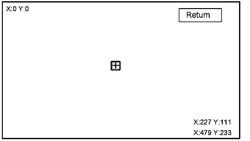 The panel touch sensing system consists of a touch sensitive resistive membrane covering the display. Contrary to other systems using infrared beams, the screen has to be physically touched to make it work. The display has the capability of 479 locations (left to right), and 233 touch locations (top to bottom). The upper left hand corner is position (0, 0) and the lower right hand corner is (479, 233) as displayed. Touching anywhere on the screen displays the coordinate of the location, and a + icon appears where you touched the screen. If any areas of the screen either don't respond, or respond at some other location when touched, then replace the audio-navigation unit.