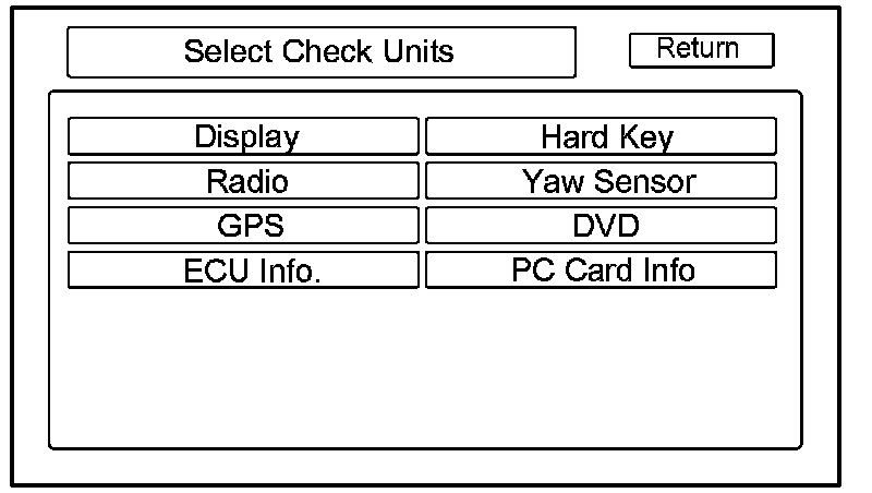 This screen looks for problems in the audio-navigation unit. When you initiate this diagnosis, the audio-navigation unit may freeze or delay up to a minute while the diagnosis runs.