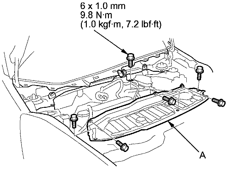 2. Remove the bolts, then remove the under-cowl panel (A).