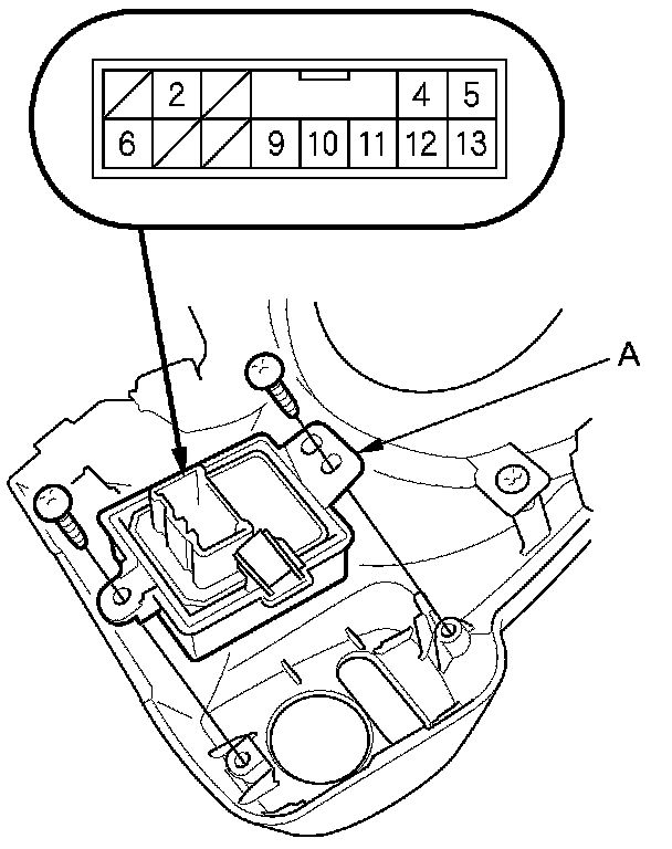 2. Disconnect the 13P connector from the power mirror switch (A).