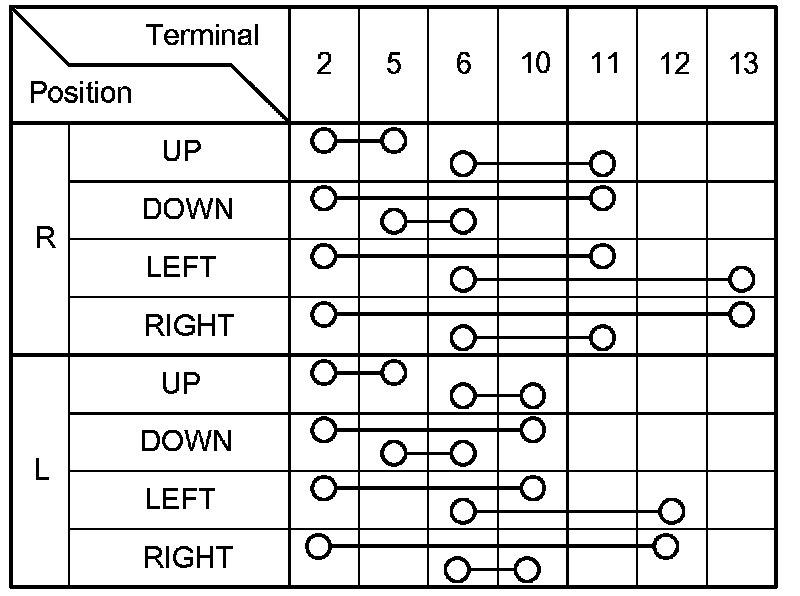3. Check for continuity between the terminals in each switch position according to the table.