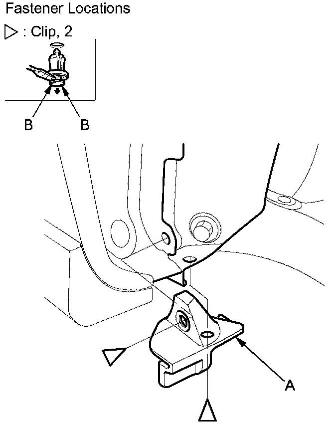 NOTE: To release the clips, pry up on the center pin at the notch (B).