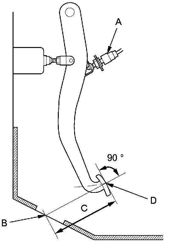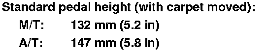 3. Pull back the carpet and find the cutout (B) in the insulation. Measure the pedal height (C) at the center of the pedal pad (D) to the floor without the insulation.