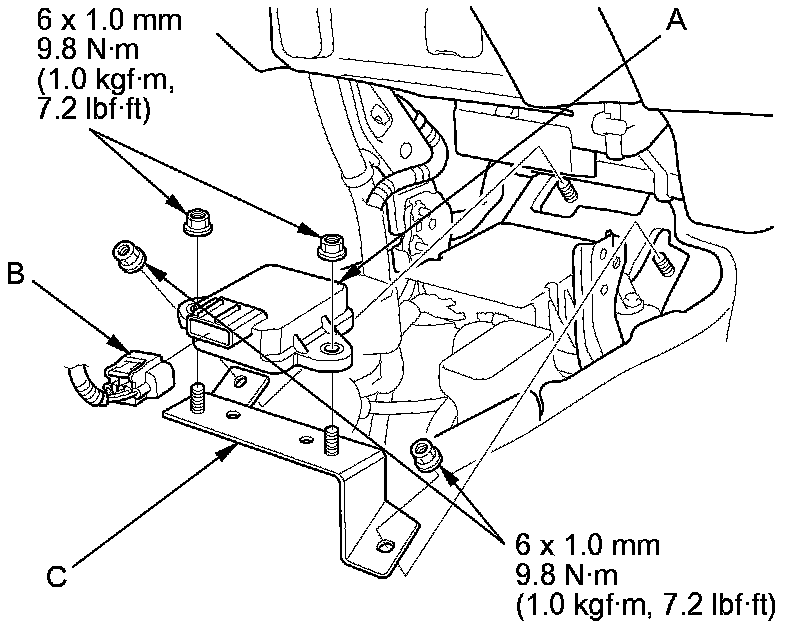 6. Install the yaw rate-lateral acceleration sensor in the reverse order of removal.