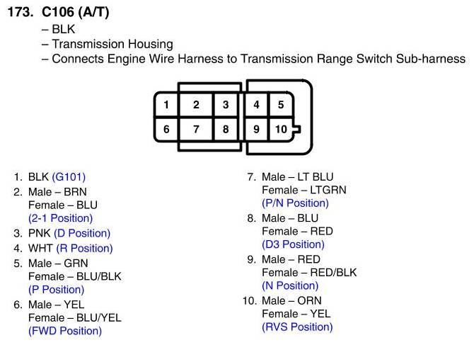 View 173 - C106 Connector View (A/T)
