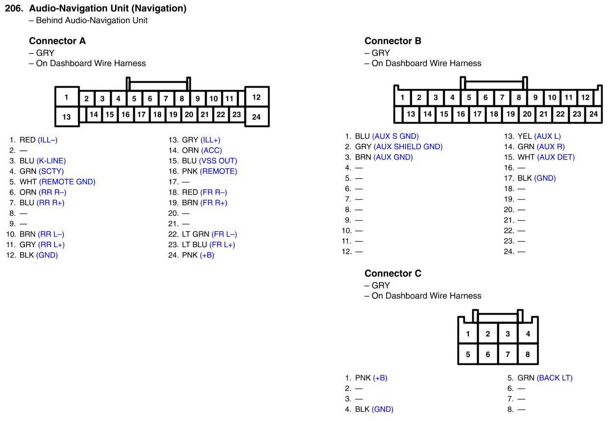 View 206 - Audio-Navigation Unit Connector View (Navigation)