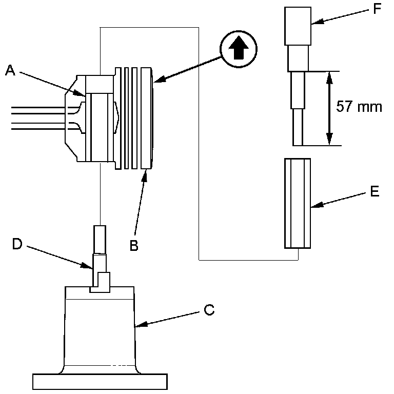 3. Assemble and adjust the length of the adjustable piston pin driver head and insert adjuster to 57 mm (2.2 in).