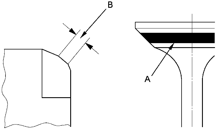 7. The actual valve seating surface (B), as shown by the blue compound, should be centered on the seat.