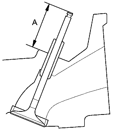 8. Insert the intake and exhaust valves in the head, and measure valve stem installed height (A).