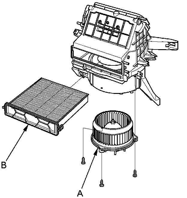 - The blower motor (A) and the dust and pollen filter (B) can be placed without removing the blower unit.