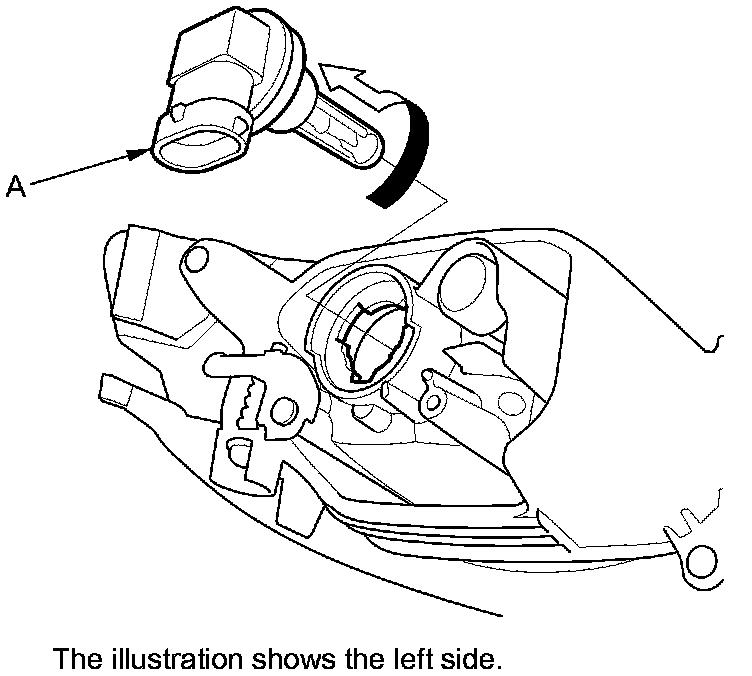 2. Turn the bulb socket (A) 45 ° counterclockwise to remove it from the housing.