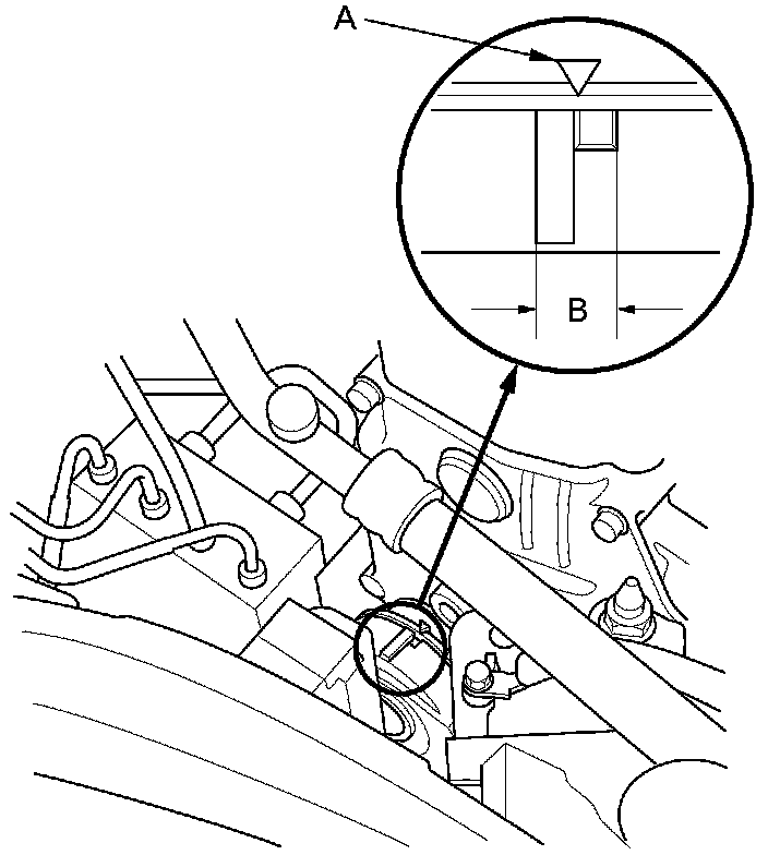 2. Check that the position of the auto-tensioner indicator's pointer (A) is within the standard range (B) as shown. If it is out of the standard range, replace the drive belt Service and Repair.
