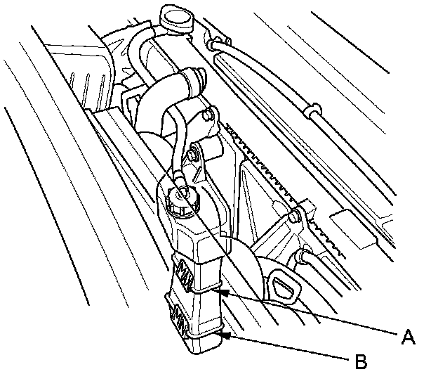 1. Check the coolant level in the coolant reservoir. Make sure it is between the MAX mark (A) and MIN mark (B).