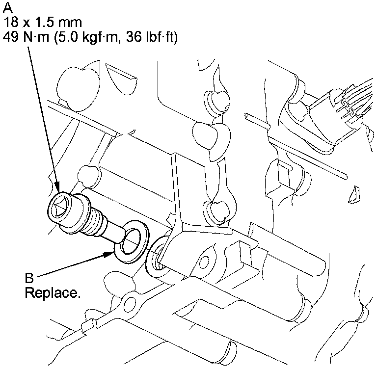 4. Remove the drain plug (A), and drain the automatic transmission fluid (ATF).