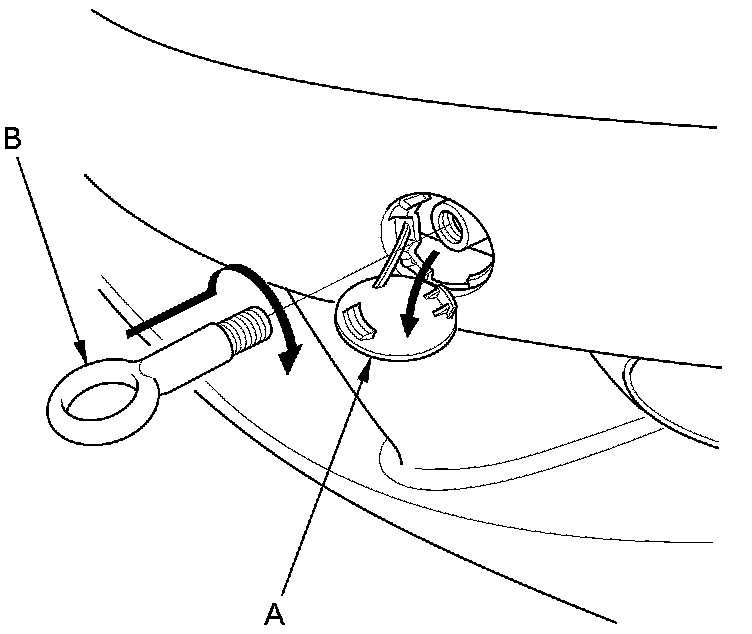 3. Screw in the detachable towing hook (B), and tighten it securely by hand.