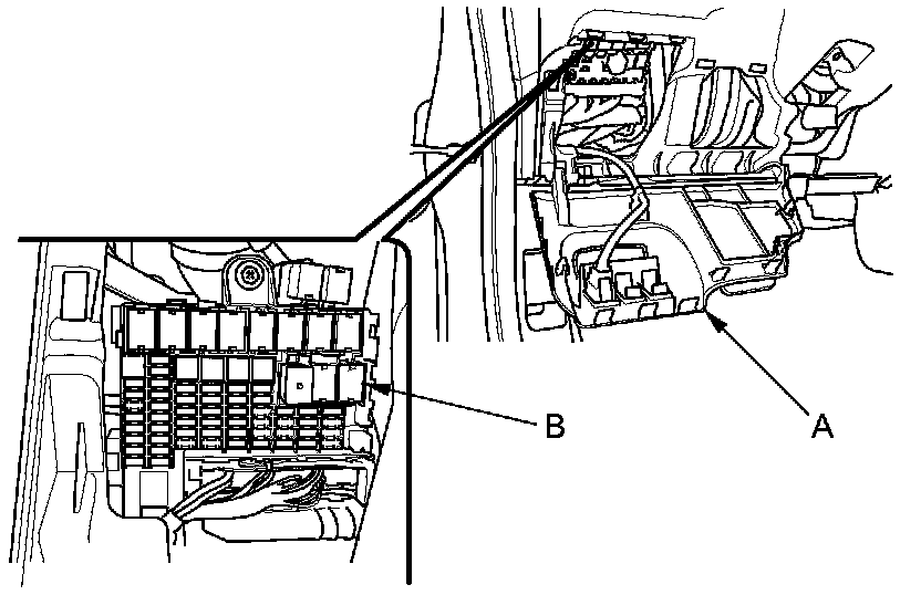 48. Open the fuse access panel (A), then remove PGM-FI main relay 2 (B) from the under-dash fuse/relay box.