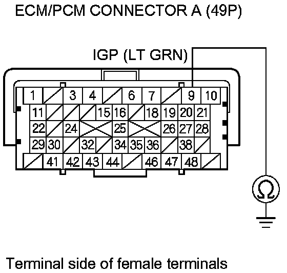 70. Check for continuity between ECM/PCM connector terminal A9 and body ground.