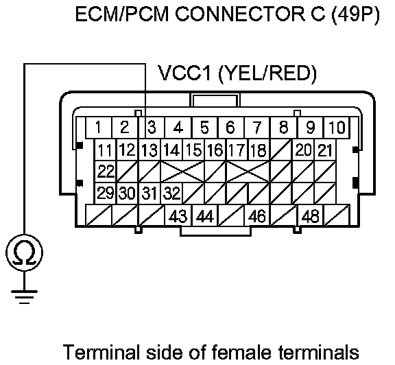 74. Check for continuity between ECM/PCM connector terminal C13 and body ground.