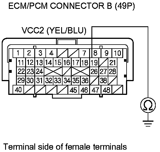 76. Check for continuity between ECM/PCM connector terminal B19 and body ground.