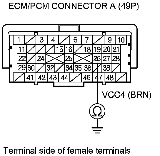35. Check for continuity between ECM/PCM connector terminal A4 and DLC terminal No. 14.