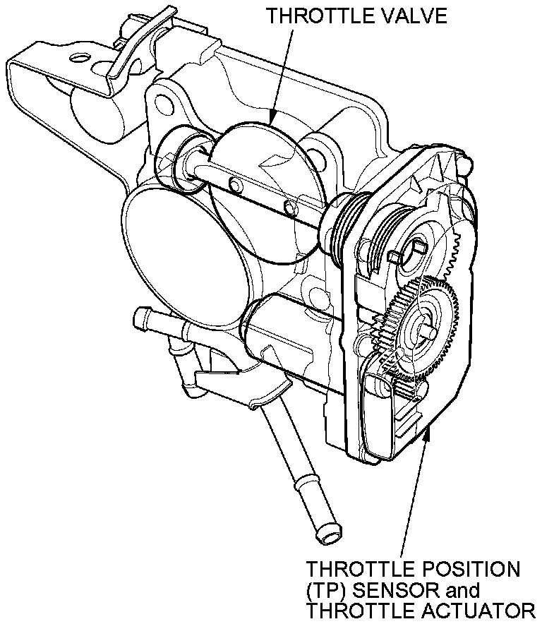 The electronic throttle control system consists of the throttle actuator, throttle position (TP) sensor A/B, accelerator pedal position (APP) sensor A/B, the electronic throttle control system (ETCS) control relay, and the ECM/PCM.