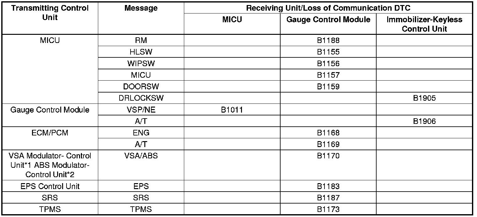 When an ECU on the CAN circuit is unable to communicate with the other ECUs on the B-CAN and F-CAN circuits, the other control units will set loss of communication DTCs. Use this chart to find the control unit that is not communicating with the other control units on the CAN circuit.