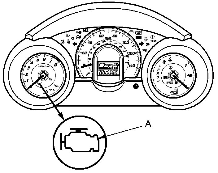 2. If the MIL stays on, connect the HDS to the data link connector (DLC) (A) located under the driver's side of the dashboard.